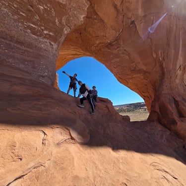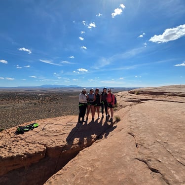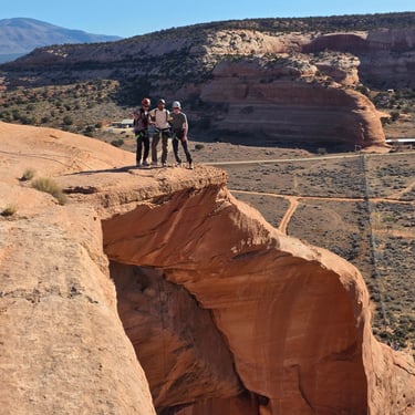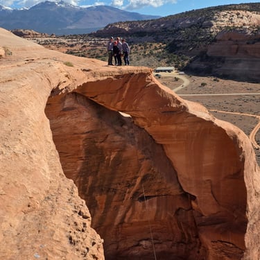 After taking in the scenery, you'll have the opportunity to walk down to a unique slit in the dome, which is actually the start of another arch. And then, you'll get to rappel 120 feet down to the ground! This is an incredible experience, especially since the rappel is free hanging from start to finish. That means you'll be suspended in mid-air until you reach the ground. It's a thrilling and exhilarating experience that will leave you with an unforgettable sense of adventure. For the extra brave people, you have the option of doing a moderate-sized rope swing from an inner ledge inside of the Looking Glass Dome.