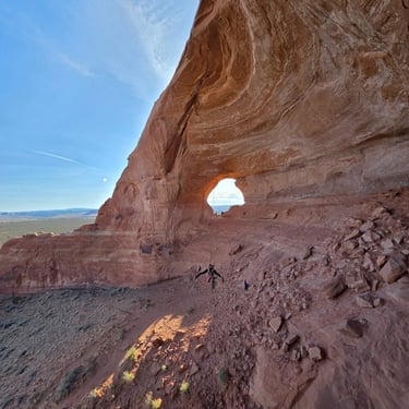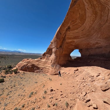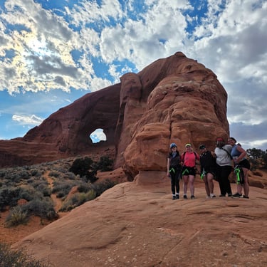 What an exciting adventure awaits! The Looking Glass Arch is a unique and thrilling destination for any adventurer or person that can handle a little scrambling up some steep slopes. The climb up to the top of the arch is approximately 350 feet, which can be a challenge for someone not familiar with these types of activities, but a breeze for anyone that's dabbled in climbing or someone that is in fairly decent shape that can hike steep slopes.