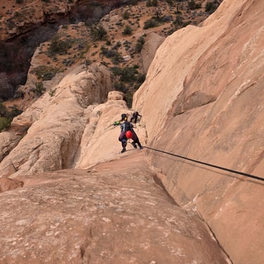 What makes this package truly special is that every other tour company ends by hiking to the road and driving back — but we don’t cut the adventure short. With Canyon Country Adventures, you’ll finish your day by climbing out of the canyon, safely roped and guided, for a true full-circle experience that blends canyoneering, climbing, and stunning views into one epic finish.