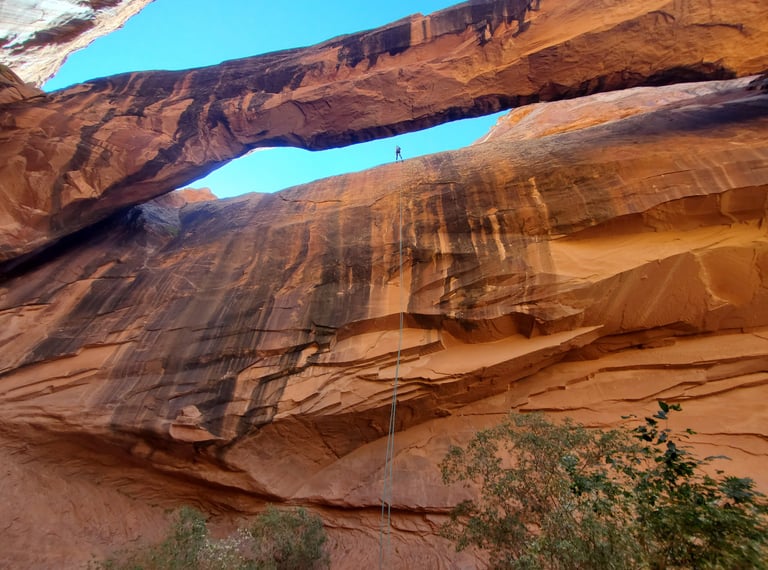 Short, scenic slot canyons and rappels near Moab featuring natural arches, fun descents, and approachable terrain — ideal for beginners and families.