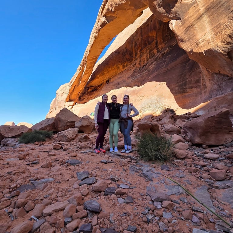 The 3-mile round-trip hike is relatively flat and easy to navigate, with no tight slot sections or complex technical challenges. Most groups complete the adventure in just a few hours, making Bow and Arrow Canyon a perfect short-and-sweet canyoneering experience that balances accessibility, scenery, and adventure.