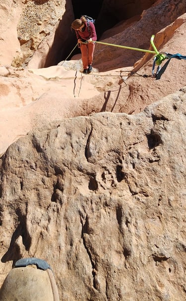 Angel Slot Canyon is commonly guided during cooler months when conditions are ideal for family friendly canyoneering. The canyon’s layout allows guides to move at a comfortable pace, take breaks as needed, and adjust the experience to match group ability and comfort levels. Anchors and rappels are straightforward, making it a safe environment for learning proper technique and rope management.