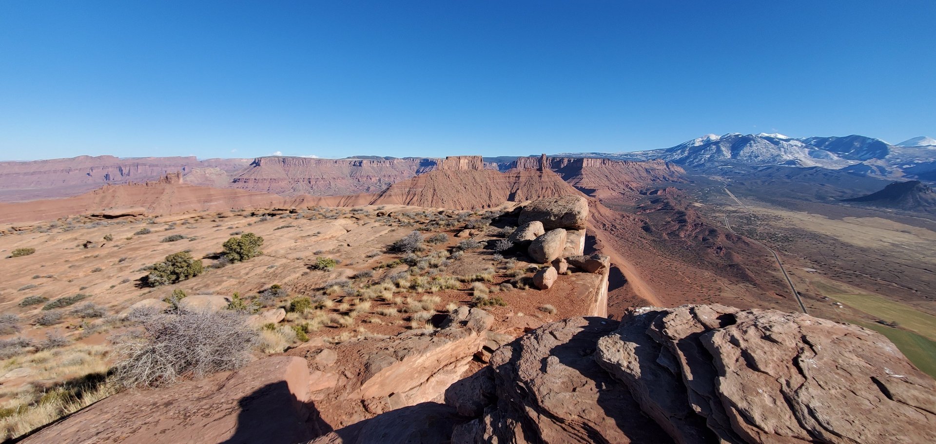 While not a traditional rock climbing route, this adventure is perfect for experienced hikers who are not afraid of heights or those climbers wanting a less intense route to the top of the mesa. Comprising 95% hiking and 5% scrambling/rock climbing, this unique adventure will take you on an epic journey through the unique cliff bands of Parriott Mesa. Embark on this thrilling adventure that begins near Castleton Tower and winds its way through the Moenkopi, Kayenta, and Wingate geologic layers, each with its own fascinating geological story to tell. As you make your way through the hike, you'll encounter some small cliff bands that require you to navigate using scrambling techniques or handlines. Once you've reached the summit of Parriott Mesa, you'll be rewarded with breathtaking views of Castle Valley and the majestic La Sal Mountains. Take in the stunning panorama from this "island in the sky" and soak up the tranquil atmosphere.